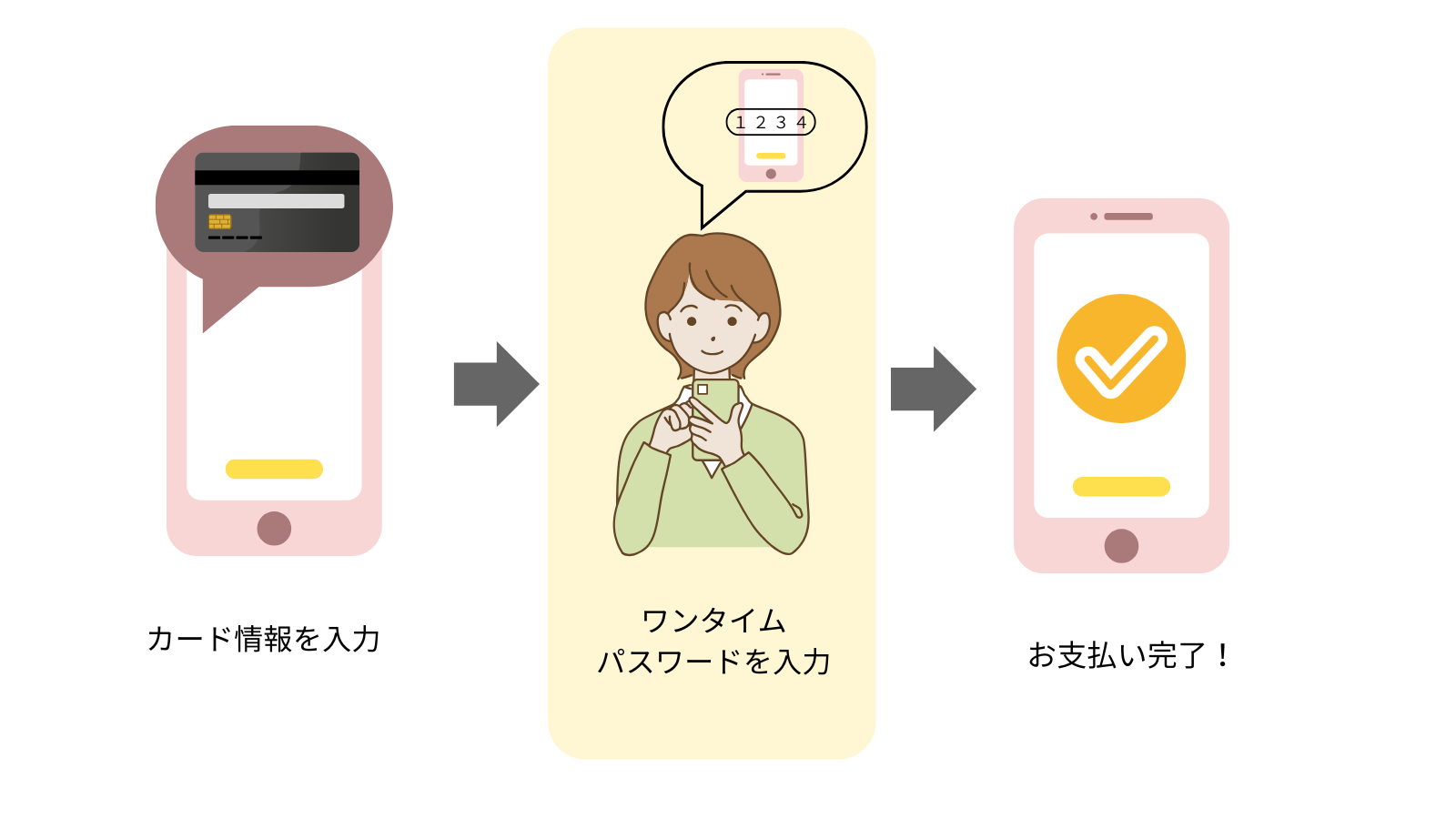 ※カード会社が安全なご注文と判断した場合、ワンタイムパスワードの入力なしでお支払いが完了することもあります。